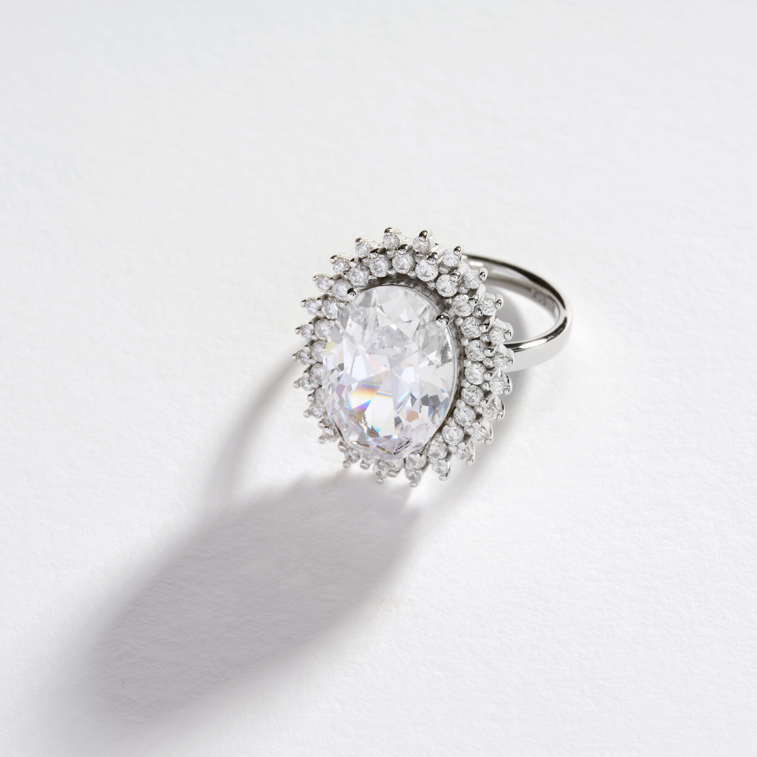 Ring with oval centre stone with a double halo.